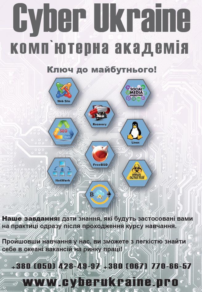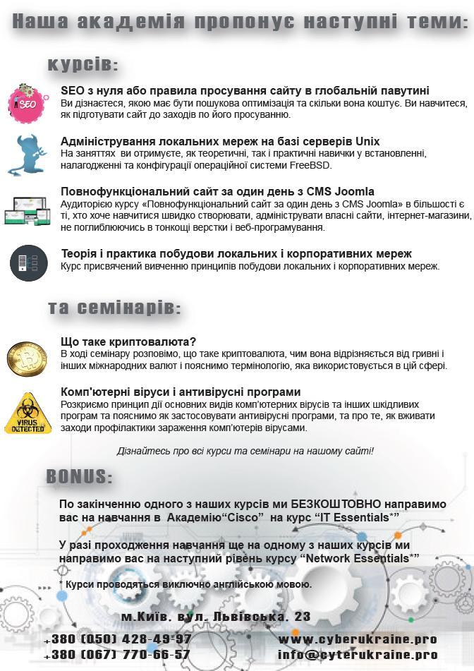 Наша комп`ютерна академія Cyber Ukraine пропонує наступні теми: