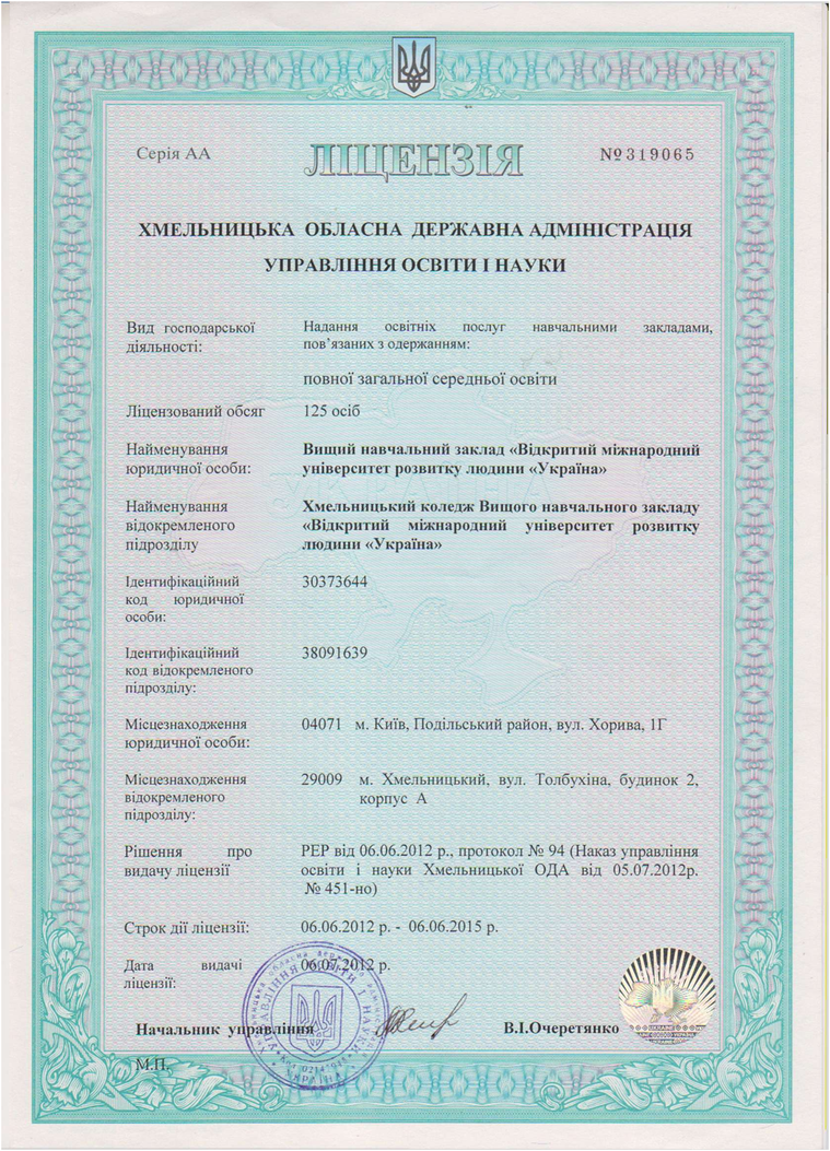 Відкритий міжнародний університет розвитку людини «УКРАЇНА»