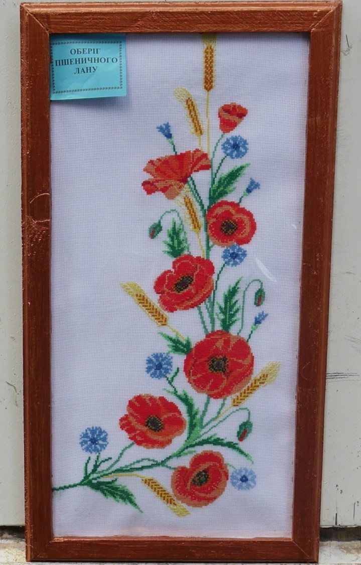 Володимир ЯРОВИЙ (Дубенська філія) привіз до Києва вражаючу кількість вишитих хрестиком картин. На кожній були зображені символи, які асоціюються з нашою Батьківщиною: лелеки у гнізді («Є лелеки – будуть діти»), червоні маки з колоссям пшениці («Оберіг пшеничного лану»), Тризуб («Невмируща воля мого народу»), соняшники («Героям Крут, моїм ровесникам, присвячую»), голуби («Голуб білий, голуб миру, повернись на Україну!») та багато-багато квітів («Намалюю квіти, намалюю…», «Наступність поколінь», «Ганнусині оченята»). З першого погляду на ці картини перехоплювало подих, адже майже фізично відчувалися любов, ніжність та щирість, із якими автор вишивав кожен хрестик.
