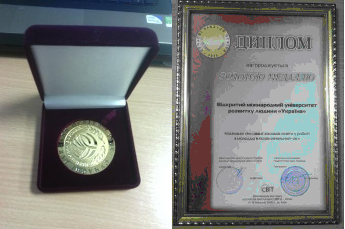 В рамках програми виставки «Сучасні заклади освіти» було проведено конкурс із тематичних номінацій, за результатом якого Університет «Україна» був нагороджений золотою медаллю в номінації «Інновації закладів освіти у роботі з молоддю в позанавчальний час». Це є підтвердженням визнання з боку керівництва Інституту модернізації змісту освіти МОН України та Національної академії педагогічних наук України якісної дозвіллєвої діяльності, орієнтованої на виховання і культурний розвиток особистості.