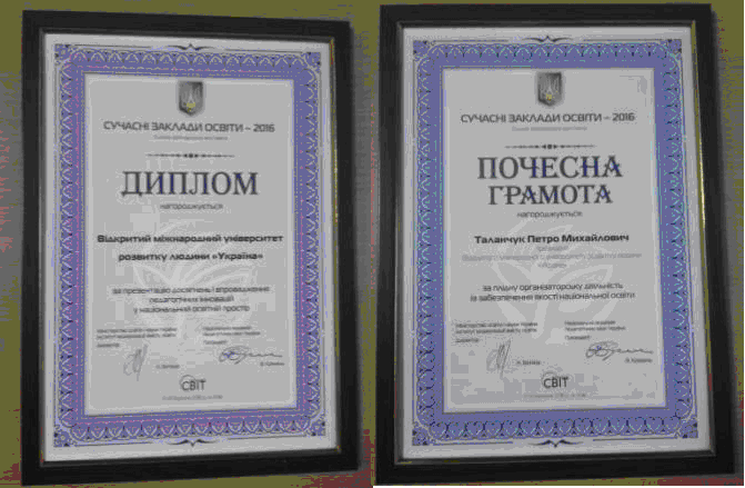 В рамках виставки традиційно президент Університету «Україна» був нагороджений Почесною грамотою за плідну організаторську діяльність із забезпечення якості національної освіти. Університет «Україна» отримав Диплом за презентацію досягнень і впровадження педагогічних інновацій у національний освітній простір. Тож, можна відзначити, що отримання нагород і відзнак підтверджує ефективність діяльності Університету в процесі надання освітніх послуг.