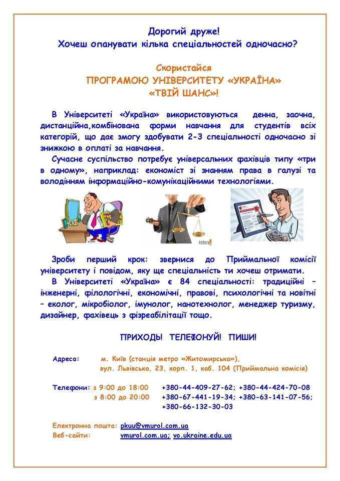 P.S.: для студентів інших ВНЗ вартість навчання на другій спеціальності складатиме 80% від її ціни за контрактом.