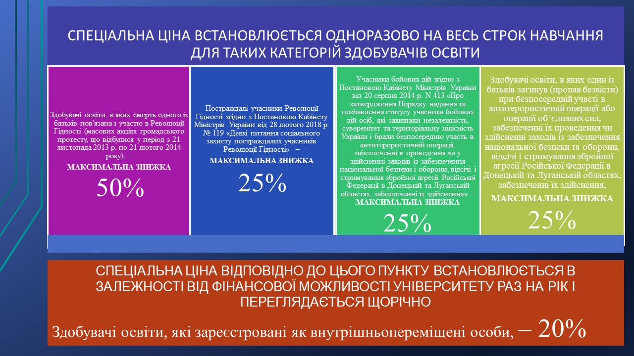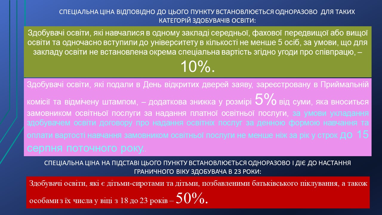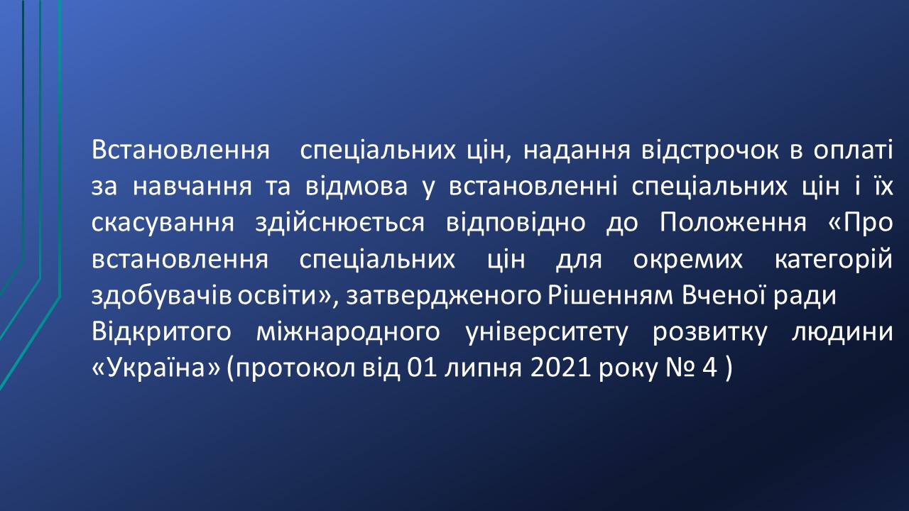 Положення про встановлення спеціальних цін для окремих категорій здобувачів освіти