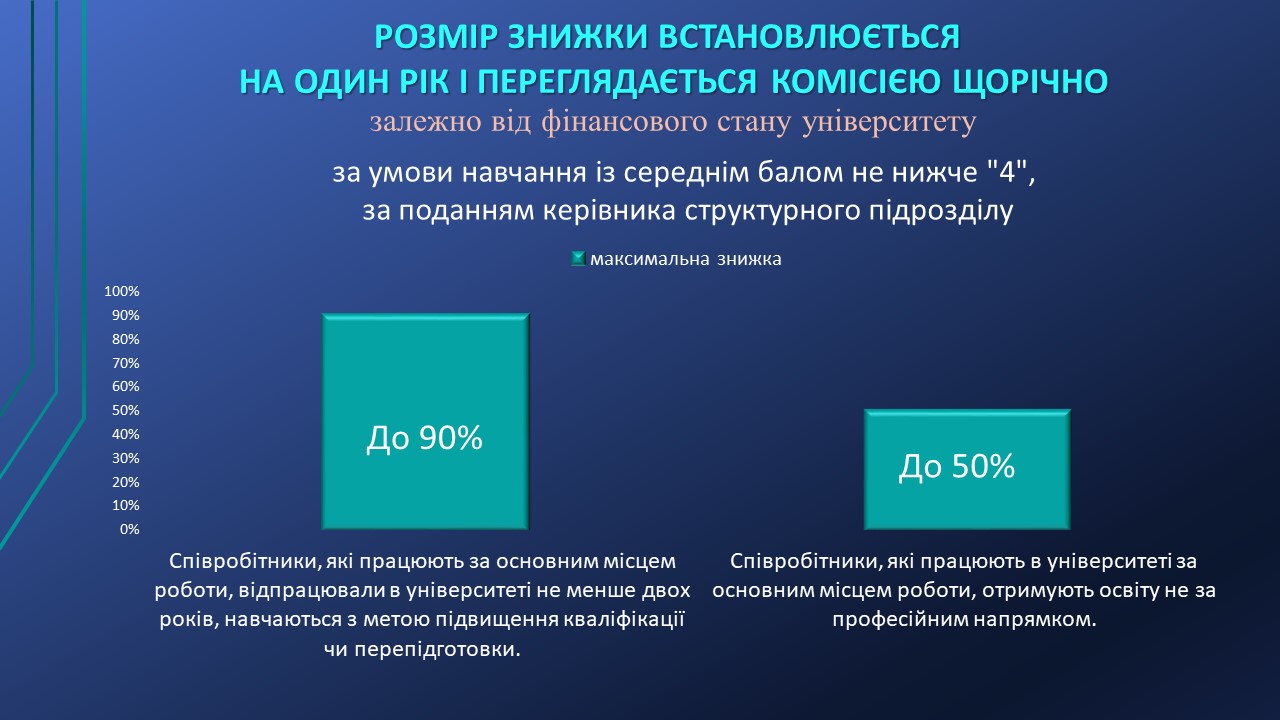 Розмір податкової знижки – 18 % від вартості навчання. Враховуються фактичні витрати, понесені в минулому році.